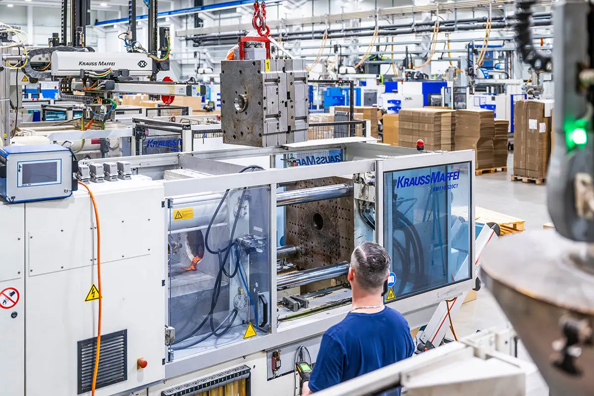 Unsere Abteilung Spritzguss verfügt aktuell über mehr als 70 Spritzgießmaschinen mit Zuhaltekräften von 200 bis 11.000 kN.