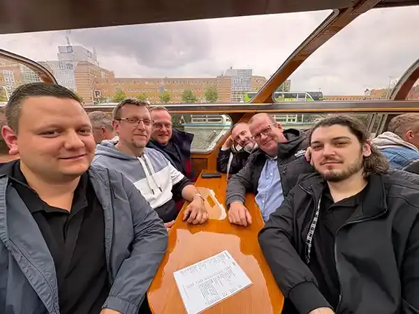 Vor dem gemeinsamen Mittagessen blieb noch Zeit, die Innenstadt auf eigene Faust zu erkunden und die Atmosphäre der Stadt zu genießen. Am Nachmittag stand eine Grachtenfahrt auf dem Programm. Für die BARKU wurde eigens ein Ausflugsboot gechartert, sodass man die Stadt aus der Wasserperspektive erleben konnte - ein echtes Highlight!