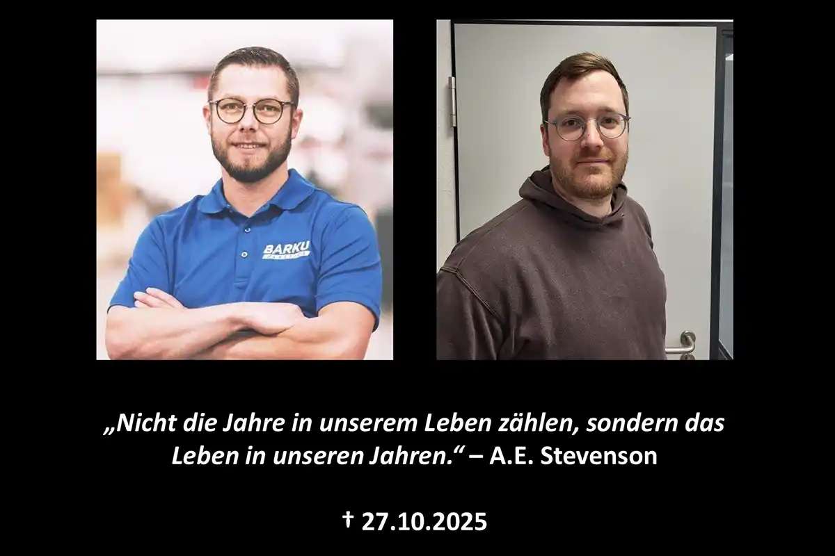 Mit großer Bestürzung und tiefer Trauer informieren wir heute über den gewaltsamen Tod unserer beiden Kollegen, Ivan Aldergot und Tobias Gleinig, bei Barku Plastics in Cleveland / Tennessee (USA), die am Montag Opfer eines Verbrechens wurden. Wir alle stehen unter dem Eindruck der sinnlosen Tat. In dieser schweren Zeit sind unsere Gedanken und unser aufrichtiges Beileid bei den Familien, Freunden sowie Kolleginnen und Kollegen von Ivan und Tobias. Wir gedenken Ihrer mit Respekt und Dankbarkeit für das, was sie für unser Team und unser Unternehmen geleistet haben.