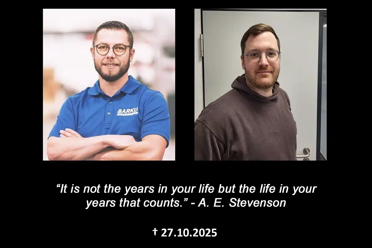 It is with great shock and deep sorrow that we inform you today of the violent deaths of our two colleagues, Ivan Aldergot and Tobias Gleinig, at Barku Plastics in Cleveland, Tennessee (USA), who were victims of a crime on Monday. We are all deeply affected by this senseless act. During this difficult time, our thoughts and sincere condolences are with the families, friends, and colleagues of Ivan and Tobias. We remember them with respect and gratitude for everything they contributed to our team and our company.